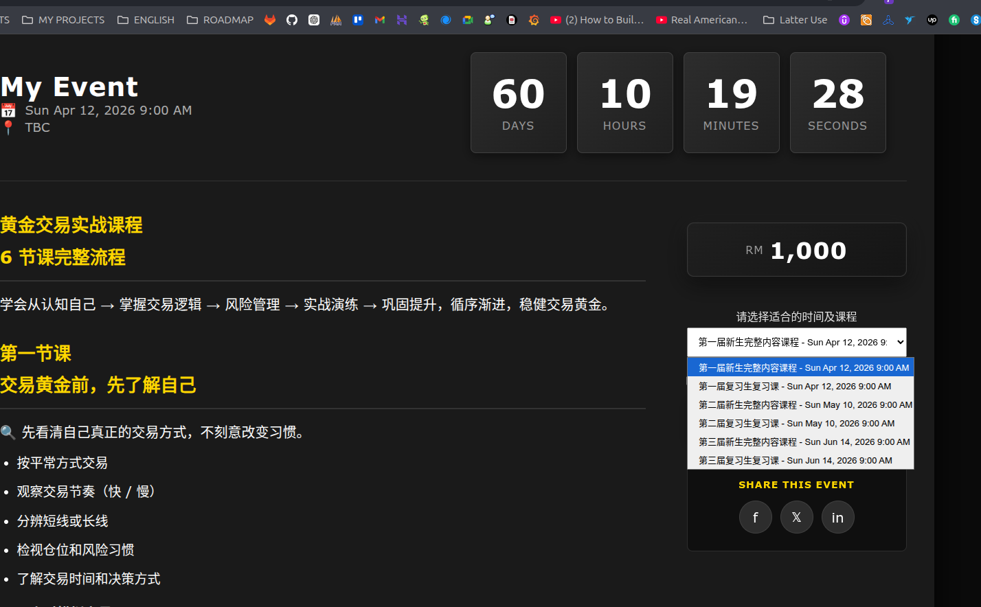本课程为 教育培训与交易技能提升 项目,仅用于帮助学员建立交易认知、风险管理能力与实战演练方法。 课程内容 不构成投资建议、财务规划或收益承诺,亦不构成任何形式的买卖指令或交易信号。
